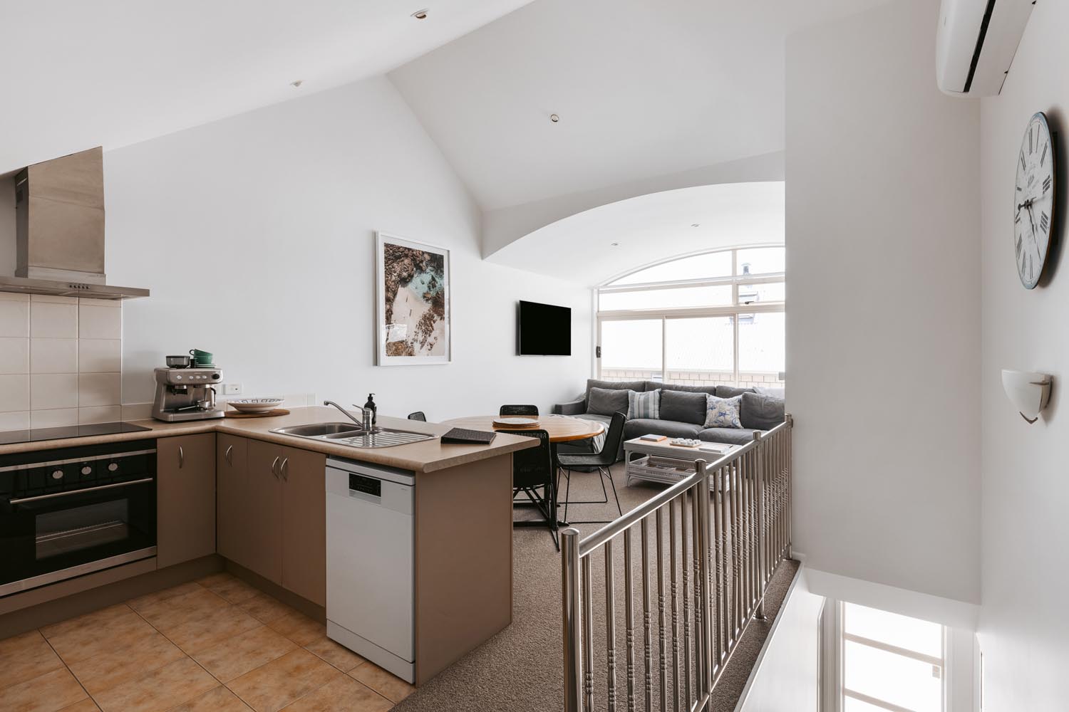 This stylish coastal townhouse is the perfect base for your beach getaway. Upstairs, you’ll find a spacious master suite with an ensuite, along with a bright and airy living area that opens to a sun-soaked deck. Downstairs, there’s a comfortable queen bedroom with a single bed and its own ensuite. Park the car and walk everywhere—stunning beaches, vibrant shops, restaurants, and bars are all just minutes away, with downtown right on your doorstep. The ideal spot for relaxation and convenience.