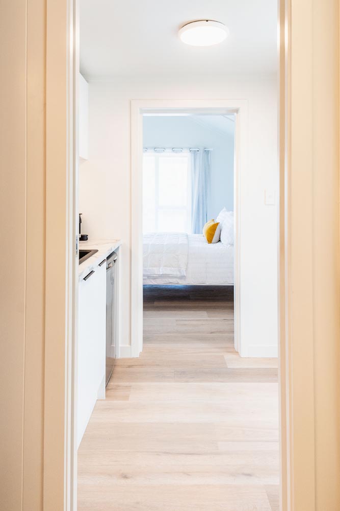 Inside, the studio features a comfortable queen bed, cozy seating area with Smart TV, and a fresh, modern bathroom. While there are no cooking facilities, a mini fridge, toaster, and kettle are provided for your convenience.