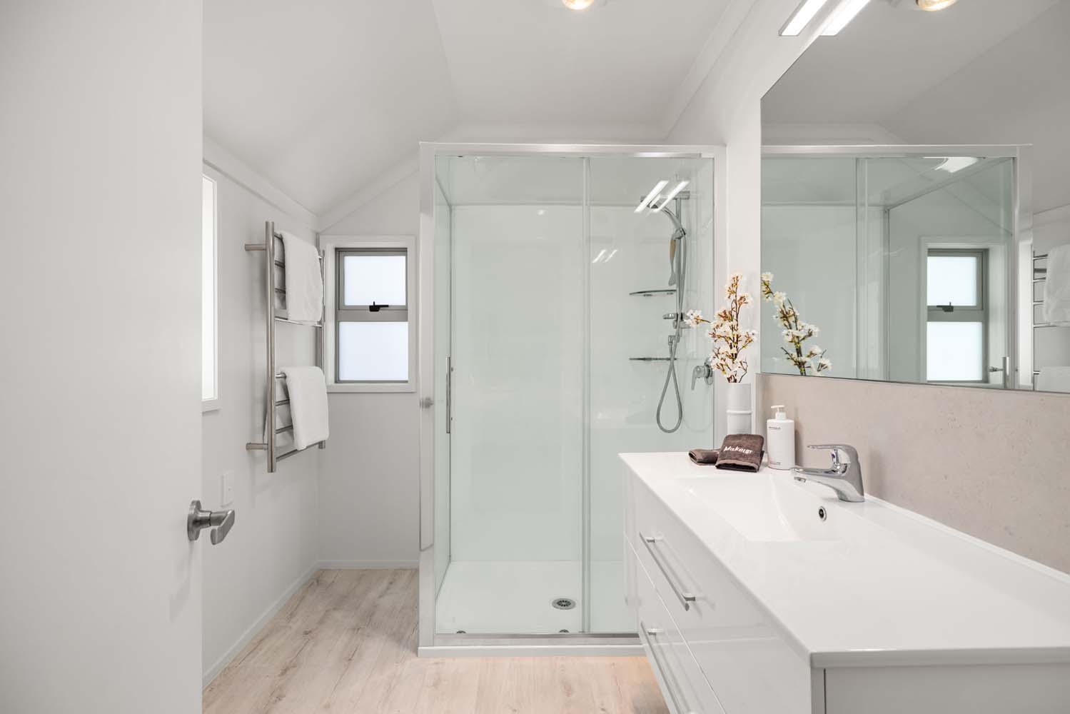 The holiday home boasts two spacious bedrooms, each thoughtfully appointed with plush bedding and ample storage space. The master bedroom features an en-suite bathroom, while a second bathroom is conveniently located for guests staying in the second bedroom, which can be made into a king or two singles.