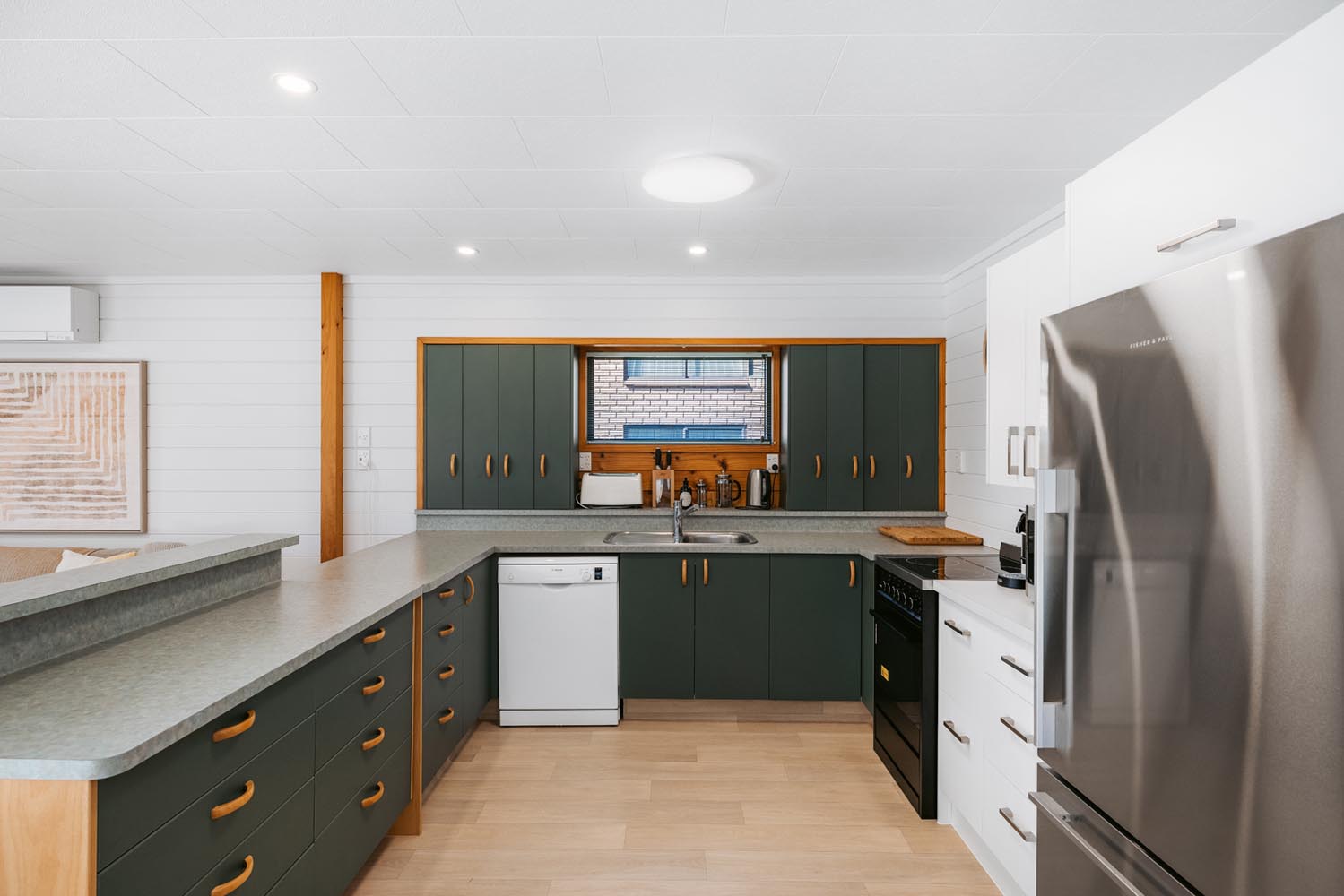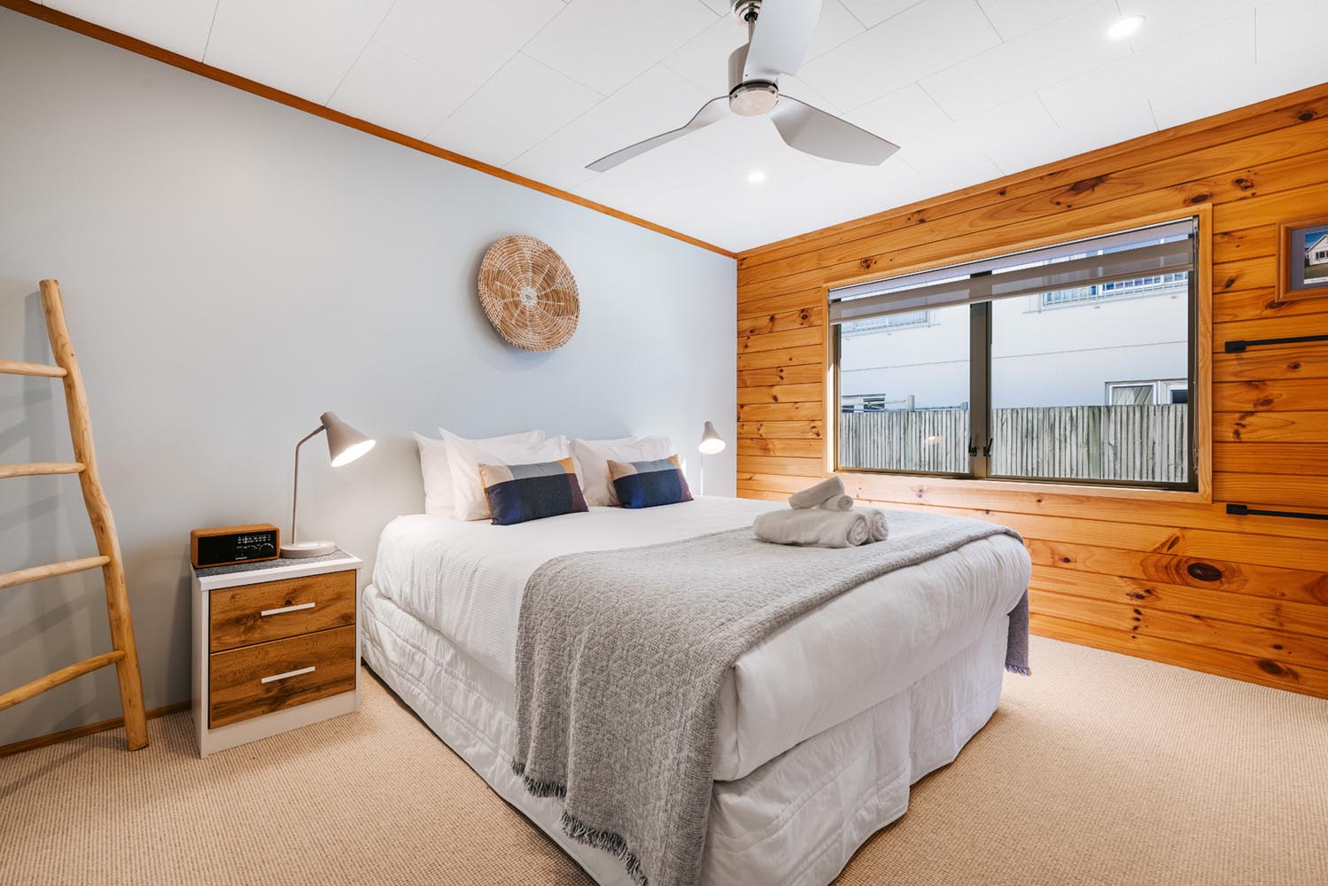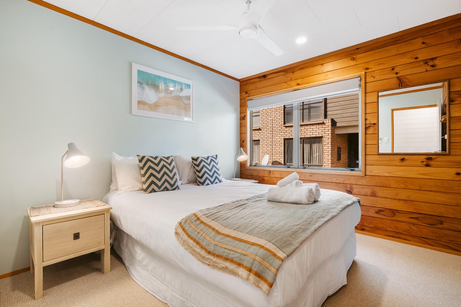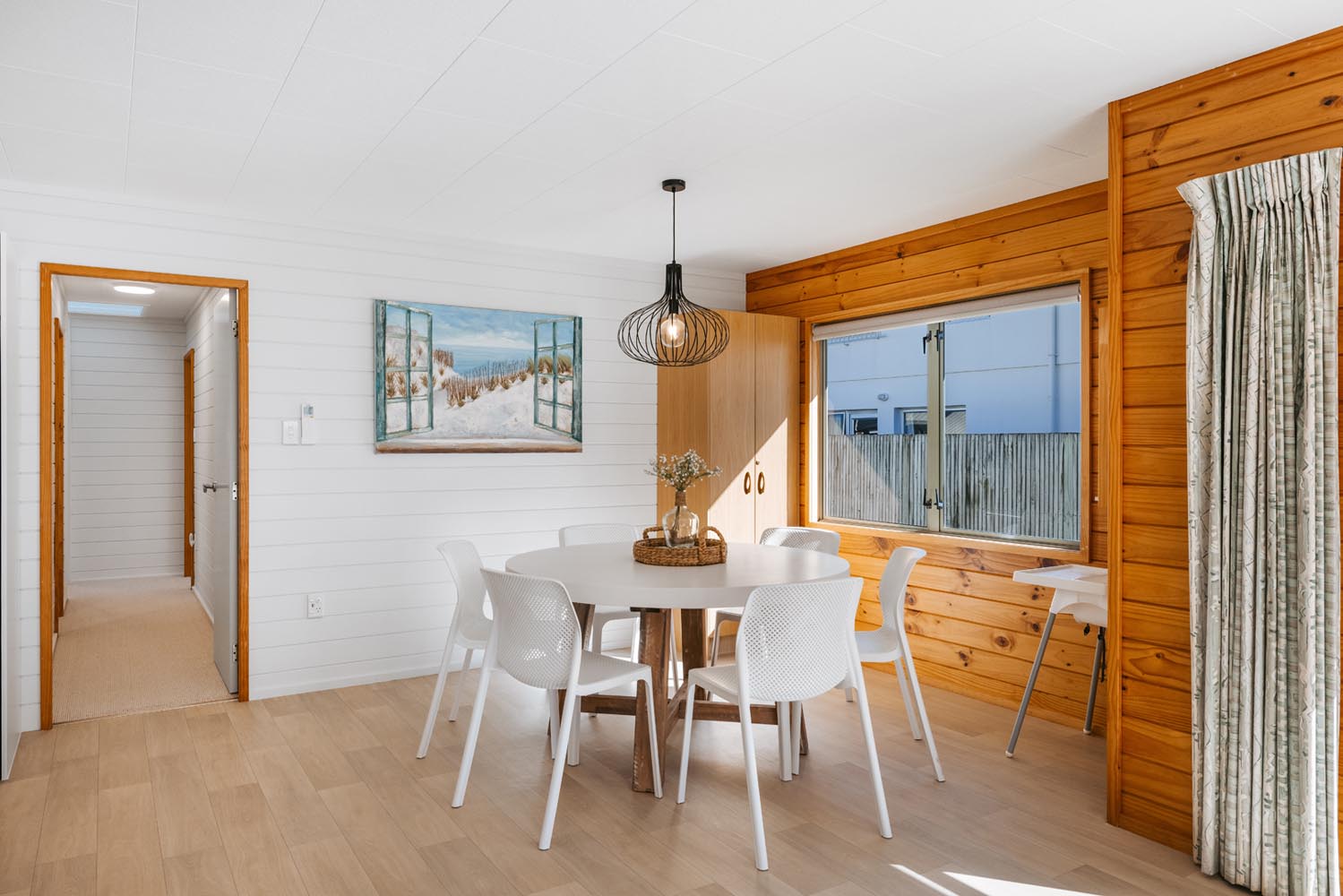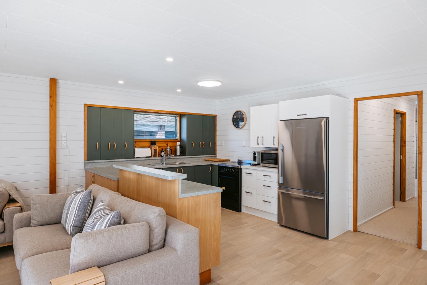 The main living area provides plenty of space and open plan living. The kitchen is fully equipped including coffee machine, comfortable couches and window seat, Quality bean bags for the kids. The main living leads to an outdoor built in seating area, catching the morning sun. Enjoy a coffee and watch the world go by.