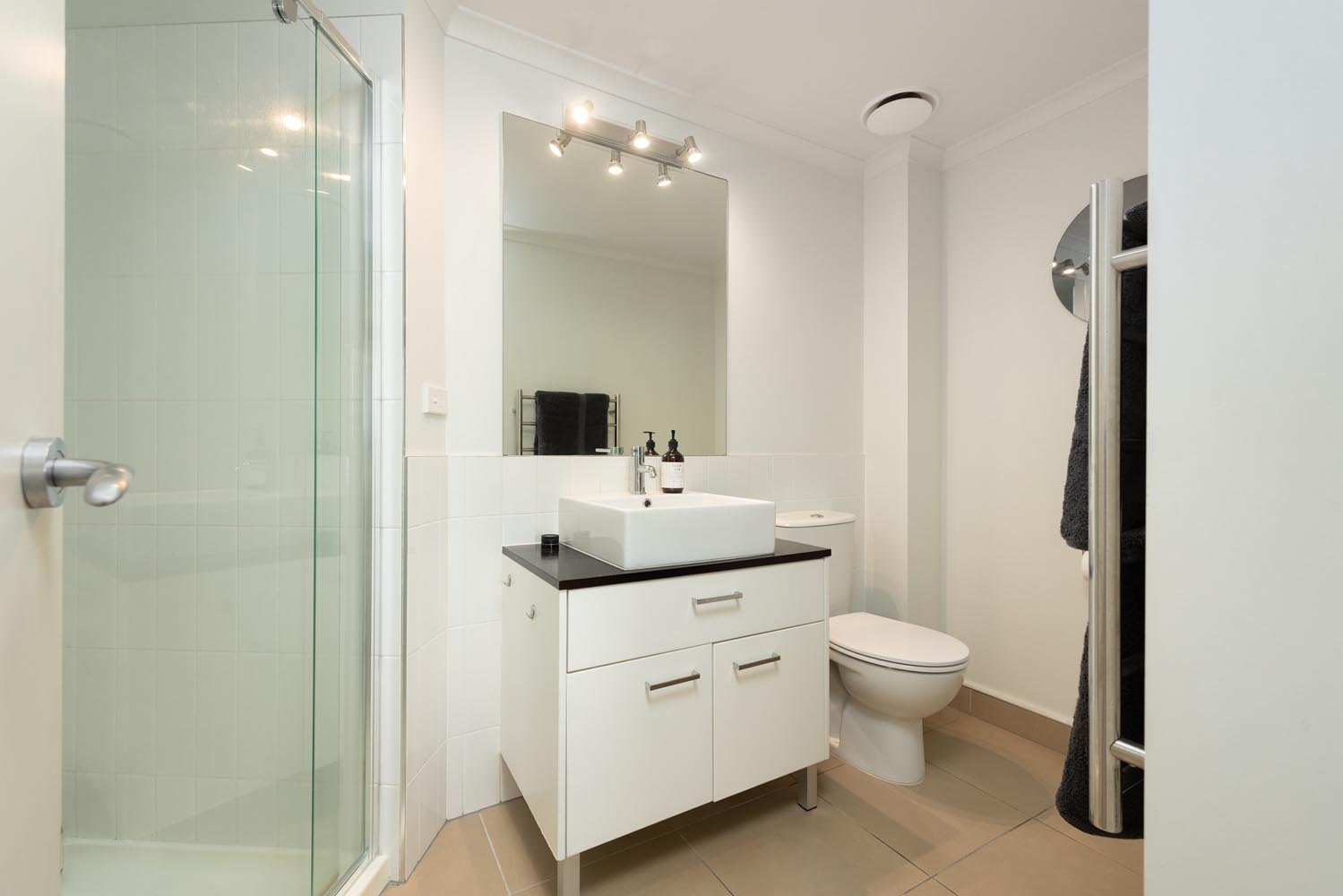 To the rear of the apartment is the second bedroom and bathroom with bath and shower. The laundry has a washing machine. Don’t worry about packing beach towels as we provide some for you.