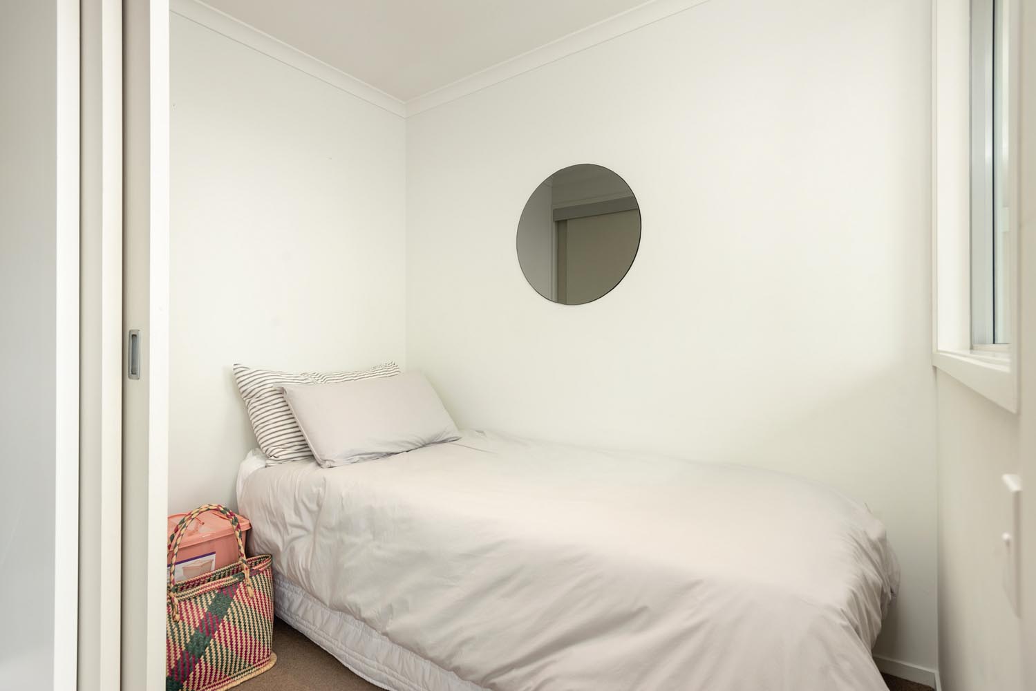 Separated by sliding doors is a single bed, handy for a teen or friend not wanting to share.