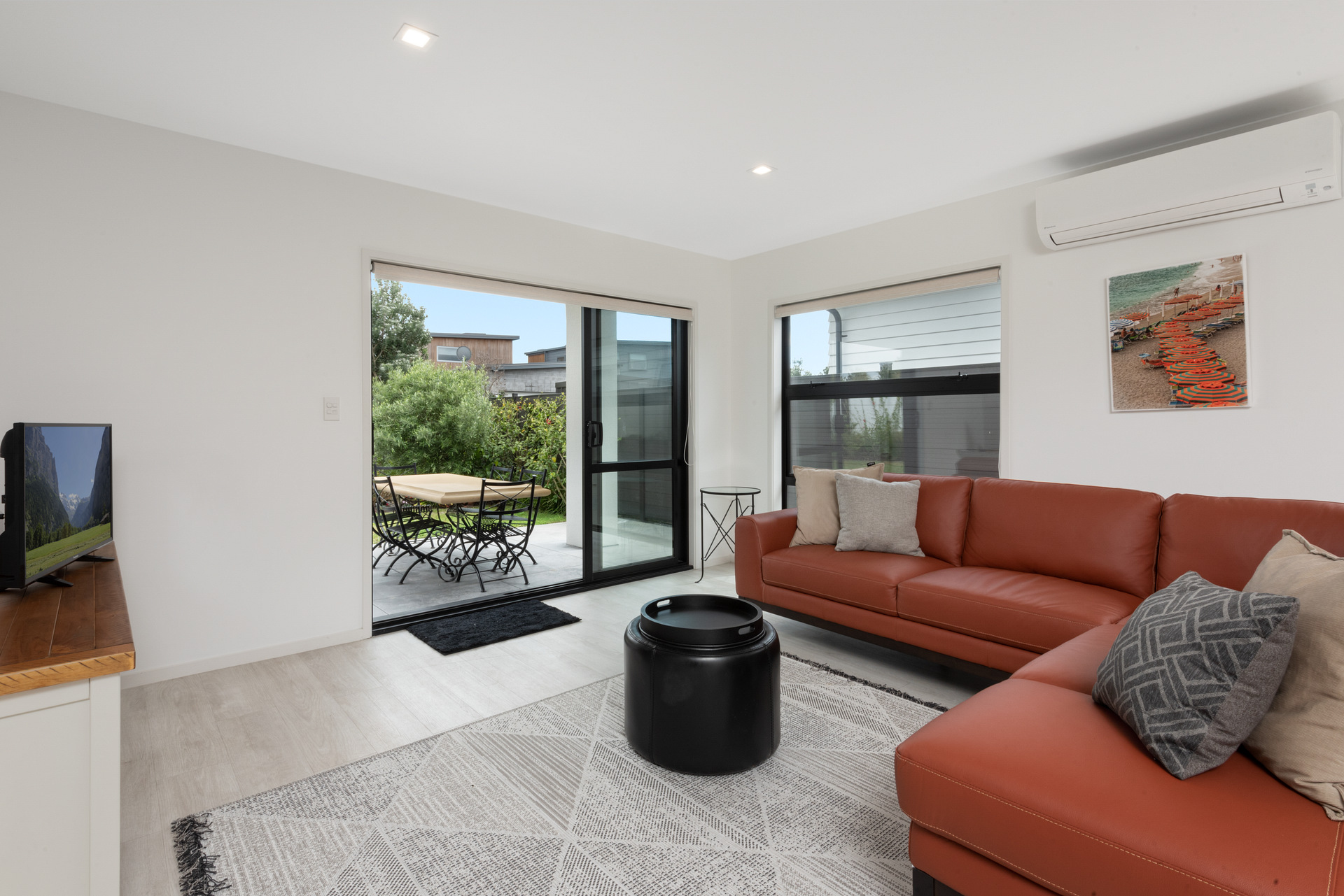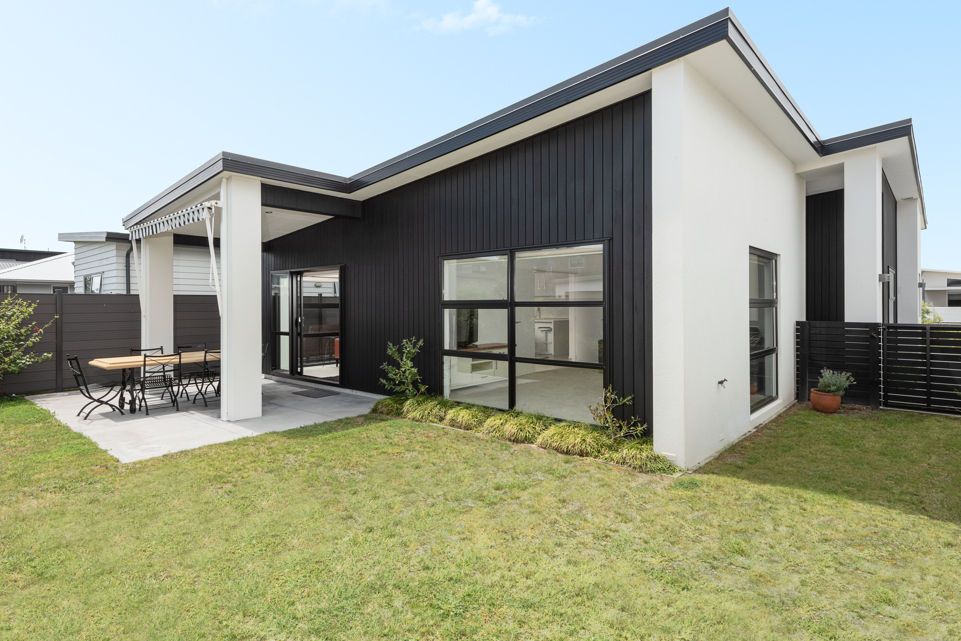 A single level home with off street parking and garage, built only three years ago… super warm and quiet with double glazing and heat pump.