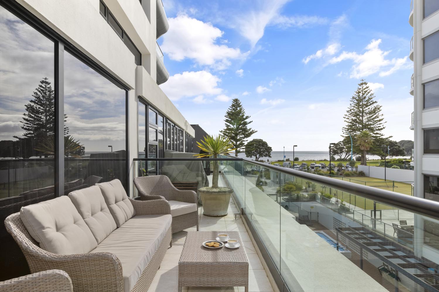 The private gym and beach access is at ground level. From here you can stroll around or up Mauao and/or enjoy a coffee at one of the many popular cafe’s. A handy dairy and the hot pools are just across the street.