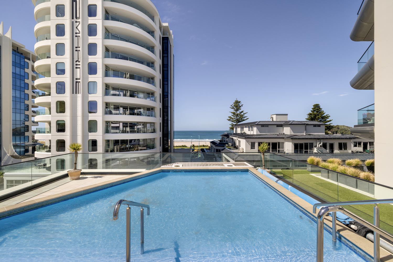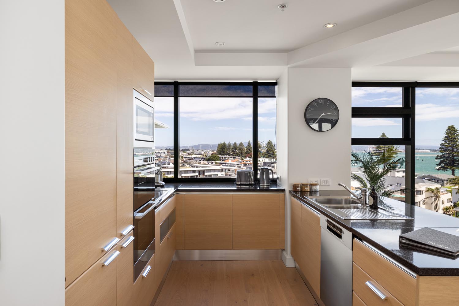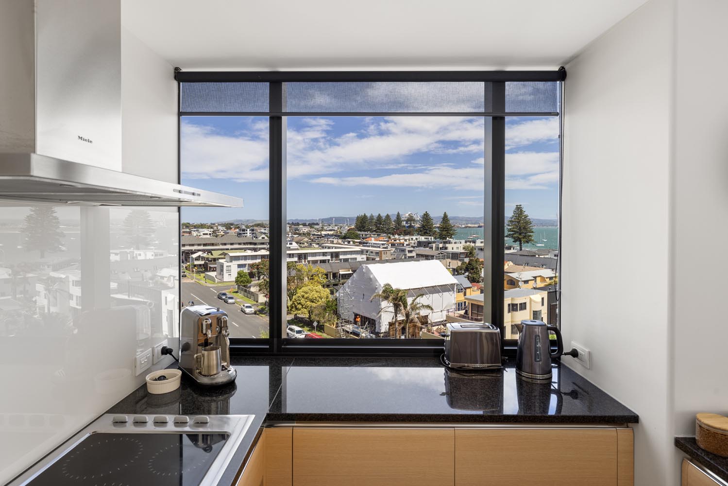 The private gym and beach access is at ground level. From here you can stroll around or up Mauao and enjoy a coffee at the many popular cafe’s. A handy dairy is just across the street.