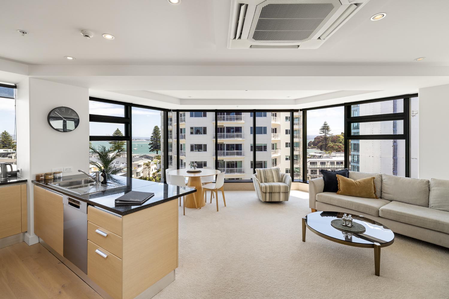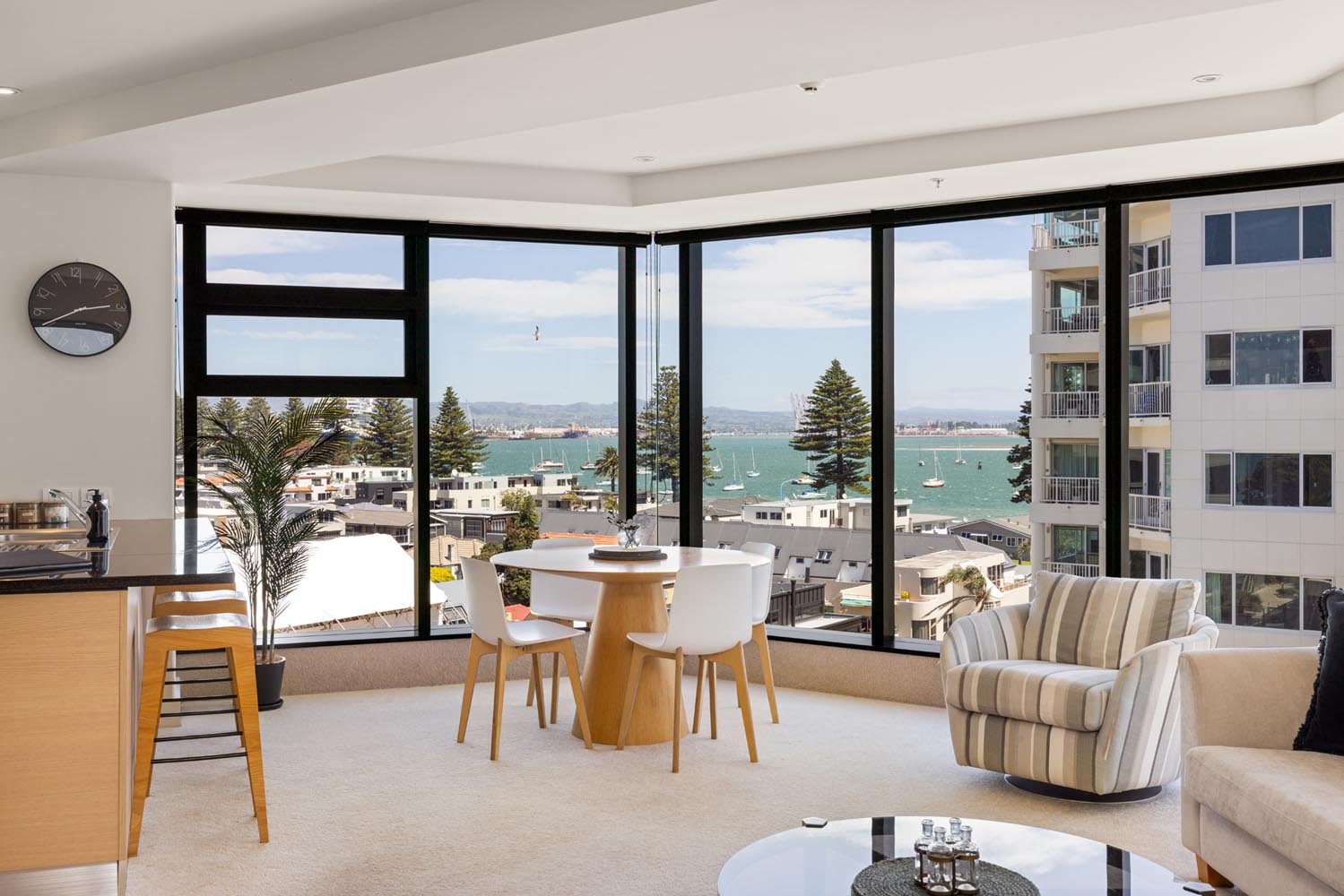 This fifth-floor stunner is located in one of the best luxury buildings in Mount Maunganui. Featuring a layout set to capture expansive views from all the rooms you won’t want to leave.