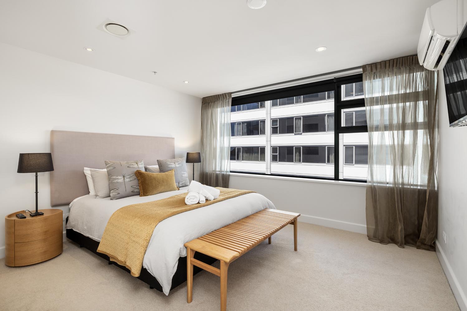 The apartment features two double bedrooms. One with a king bed and one that can be a king or two singles. The linens are fresh and the towels fluffy. The master has an en-suite and TV. The second bathroom has a washing machine and dryer. Both bathrooms have luxurious underfloor heating.