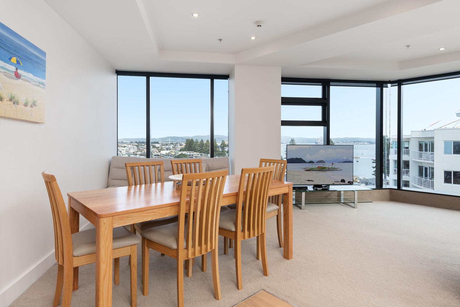 Is it time for you to forget about your car and enjoy a few days of rest and relaxation at the beach? Our stunning apartment at Eleven Maunganui offering expansive sea views is the perfect place for just that. Two spacious bedrooms, two bathrooms an open plan living area and modern kitchen. Superb views from all the rooms. With the popular Café’s, Hot Pools, Main Beach, Pilot Bay Harbour and magnificent Mauao just moments away this is the perfect choice for couples or families