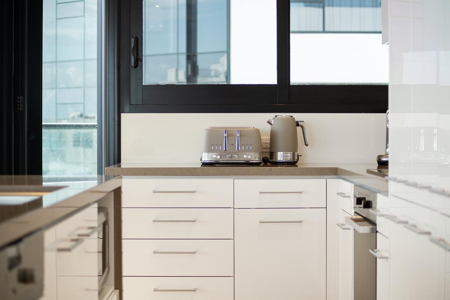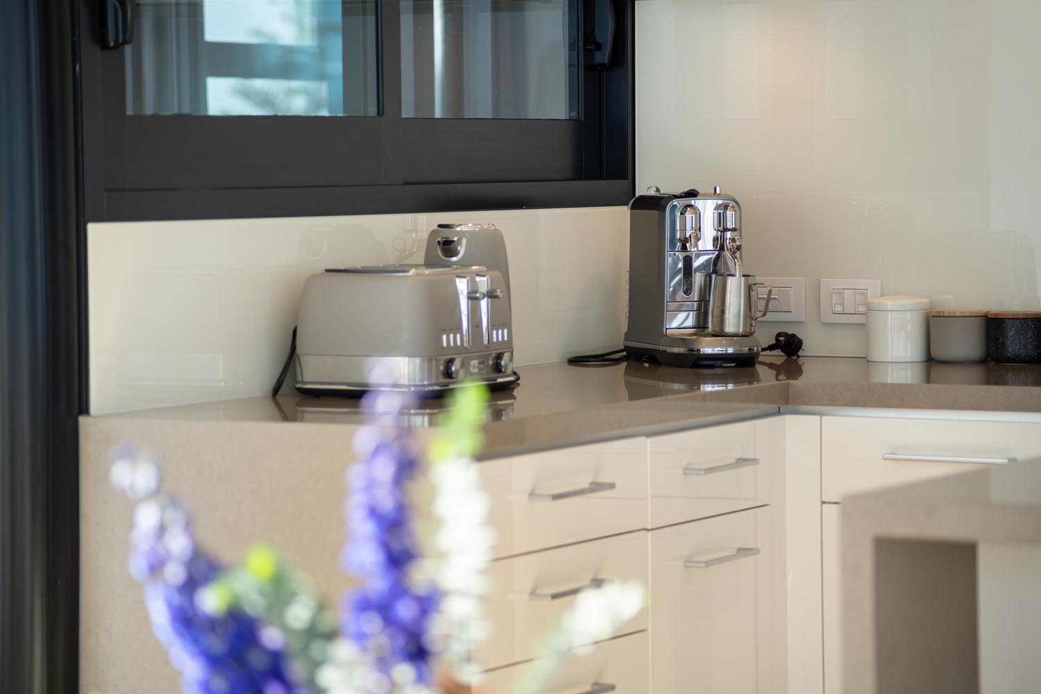 The kitchen is modern and newly fitted out with everything you need for cooking in. Dine indoors or on the balcony.