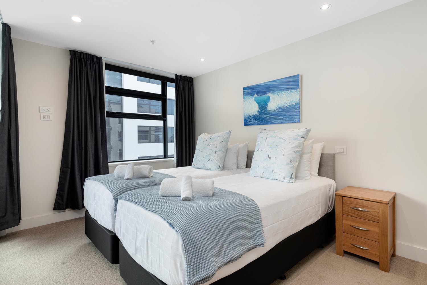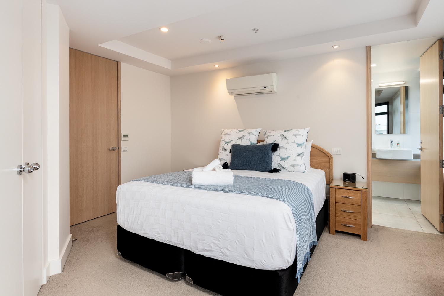 The master bedroom has an en-suite bathroom and a king bed in the second bedroom you can choose a king bed or twin single beds.